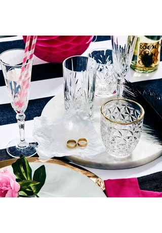 Ob zum Kaffee oder zum Wein: Ein Glas frisches Wasser in einem Aurelie Glas ist immer ein gern gesehener Begleiter. Es löscht den ersten Durst und neutralisiert den Geschmackssinn, so dass man sich besser auf die feinen Aromen eines guten Espressos oder edlen Tropfen konzentrieren kann. Glas mit goldenem Rand und in Kristalloptik.