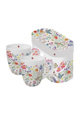 in bunt gestaltetem Folral-Dessin mit Marienkäfer
