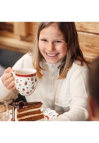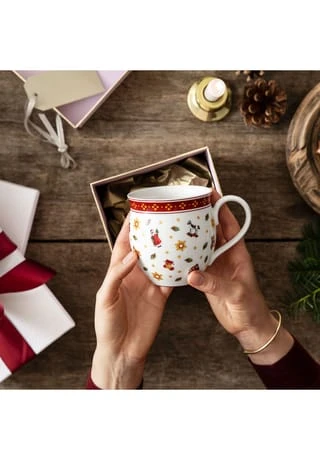 Mit der weihnachtlichen Kollektion Toy’s Delight von Villeroy & Boch bringen Sie besinnliche Festtagsstimmung in Ihr Zuhause. Die vielseitige Artikelauswahl lädt ein zum kreativen Kombinieren, Sammeln und Verschenken. Detailverliebte Motive und Muster in den weihnachtlichen Farben Rot, Grün und Weiß versprühen nostalgischen Charme und wecken Kindheitserinnerungen. Die Kollektion ist der perfekte Begleiter für die besinnliche Winterzeit. Der Name Villeroy & Boch steht bereits seit 1748 für edles Porzellan höchster Qualität. Kaffee, Tee oder Glühwein genießen Sie aus dem großen Becher mit praktischem Henkel. Genießen Sie den Zauber der Weihnachtszeit mit Villeroy & Boch. Mikrowellensicher und am besten von Hand reinigen. Becher für Tee, Kaffee, Kakao, Punsch oder Glühwein Gefertigt aus hochwertigem Premium Porcelain Passt zu Toy’s Delight Royal Classic und zu Toy’s Fantasy