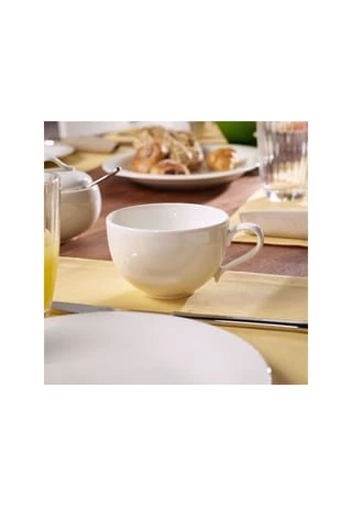 New Cottage steht mit purem und klarem Design für einen neuen Landhausstil. Der feine Scherben aus hochwertigem Premium Porcelain hat eine weiche organische Form. Natürlich und zeitlos passt das Geschirr zum entspannten Essen und zu festlichen Anlässen. Seit 1748 steht Villeroy & Boch für Tischkultur höchster Qualität. Ob morgens oder am Nachmittag, aus der großen Tasse schmeckt der Milchkaffee besonders gut. Genießen Sie Ihren italienischen Kaffeemoment mit Villeroy & Boch. Natürlich geeignet für Spülmaschine und Mikrowelle. Tasse für einen großen Guten-Morgen-Kaffee Gefertigt aus hochwertigem Premium Porcelain Passt ideal zum Porzellan Mariefleur und Mariefleur Gris