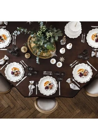 Toy’s Delight Royal Classic ist inspiriert von der Form nostalgischer Pappteller, verziert mit einem hochwertigen Porzellan-Relief. Dieses Relief zieren Motive typischer Spielzeuge aus dem Erzgebirge. Die reinweiße Kollektion passt wunderbar zu den Stücken von Toy’s Delight in weihnachtlichen Farben. Seit 1748 steht Villeroy & Boch für Porzellan allerhöchster Qualität. Der dekorative Teller passt perfekt zum Weihnachtsbrunch oder zum Kaffee am Nachmittag und bringt besinnliche Gemütlichkeit auf den Tisch. Bringen Sie Weihnachtsstimmung auf den Tisch mit Porzellan von Villeroy & Boch. Natürlich geeignet für Spülmaschine und Mikrowelle. Für Frühstück, Brunch oder Nachmittagskaffee Gefertigt aus hochwertigem Premium Porcelain Passt zu Toy’s Delight und zur Annual Christmas Edition