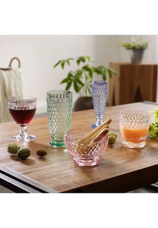 Ein Kristallmuster in Rautenoptik, in dem sich das Licht bricht: Entdecken Sie mit der Kollektion Boston Coloured die Faszination des modernen Country-Lifestyles. Robuste Formen und hervorragende Materialeigenschaften machen die farbigen Gläser aus Kristallglas zum Glanzstück auf der sommerlich gedeckten Tafel. Angenehme Haptik trifft auf Leichtigkeit und Eleganz. Seit 1748 steht das europäische Traditionsunternehmen Villeroy & Boch für hochwertiges Geschirr und edle Gläser. Campari-Soda, Gin-Tonic oder ein alkoholfreier Cocktail, das grüne Longdrink-Glas ist ideal, wenn Sie Getränke gern stilvoll servieren. Lassen Sie sich begeistern von außergewöhnlichem Glas-Design von Villeroy & Boch. Spülmaschinenfest und mit besten Materialeigenschaften ausgestattet. Robustes Glas mit Facettenmuster für drinnen und draußen Gefertigt aus hochwertigem Kristallglas Entdecken Sie auch die klaren Gläser von Boston