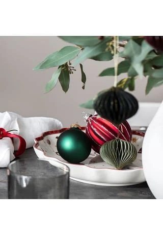 Mit der weihnachtlichen Kollektion Toy’s Delight von Villeroy & Boch bringen Sie besinnliche Festtagsstimmung in Ihr Zuhause. Die vielseitige Artikelauswahl lädt ein zum kreativen Kombinieren, Sammeln und Verschenken. Detailverliebte Motive und Muster in den weihnachtlichen Farben Rot, Grün und Weiß versprühen nostalgischen Charme und wecken Kindheitserinnerungen. Die Kollektion ist der perfekte Begleiter für die besinnliche Winterzeit. Der Name Villeroy & Boch steht bereits seit 1748 für edles Porzellan höchster Qualität. Diese dekorative Schale ist inspiriert von nostalgischen Papptellern und eignet sich zum Aufbewahren von Keksen, Obst, Nüssen oder Plätzchen. Zaubern Sie festliche Gemütlichkeit in Ihr Zuhause mit Villeroy & Boch. Mikrowellensicher und am besten von Hand reinigen. Weihnachtliche Schale für Süßes und Snacks Gefertigt aus hochwertigem Porzellan Passt zu Toy’s Delight Royal Classic und zu Toy’s Fantasy