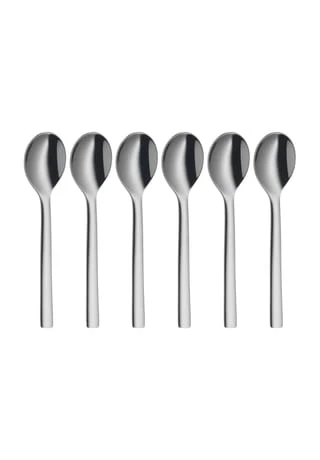 Spezialbestecke der Kollektion Nuova von WMF ergänzen die Besteckschublade in jeder Küche und sind immer dann die perfekte Lösung, wenn übliche Besteckteile an Grenzen des Komforts und des Handlings stoßen, oder Spezialisten einfach noch besser geeignet sind. Das 6-teilige Nuova Espressolöffel-Set begeistert mit hoher Funktionalität in zeitlos-schlichtem Design. Das Set aus spülmaschinenfestem Cromargan® enthält 6 Espressolöffel.