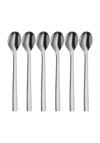 Spezialbestecke der Kollektion Nuova von WMF ergänzen die Besteckschublade in jeder Küche und sind immer dann die perfekte Lösung, wenn übliche Besteckteile an Grenzen des Komforts und des Handlings stoßen, oder Spezialisten einfach noch besser geeignet sind. Das 6-teilige Nuova Latte Macchiato Löffel-Set begeistert mit hoher Funktionalität in zeitlos-schlichtem Design. Das Set aus spülmaschinenfestem Cromargan® enthält 6 Latte Macchiato Löffel.