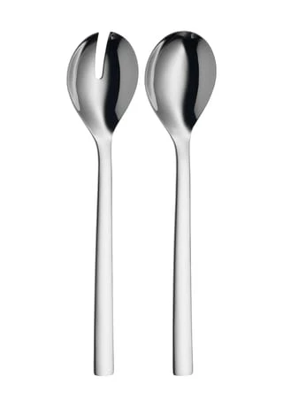 Spezialbestecke der Kollektion Nuova von WMF ergänzen die Besteckschublade in jeder Küche und sind immer dann die perfekte Lösung, wenn übliche Besteckteile an Grenzen des Komforts und des Handlings stoßen, oder Spezialisten einfach noch besser geeignet sind. Das 2-teilige Nuova Salatbesteck mit 30 cm Länge begeistert mit hoher Funktionalität in zeitlos-schlichtem Design. Gefertigt aus hochwertigem Cromargan® ist es selbstverständlich zur komfortablen Reinigung spülmaschinenfest.