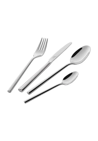 12x Menülöffel, 12x Menügabel, 12x Menümesser, 12x Kaffeelöffel, 12x Kuchengabel, 1x Suppentassenlöffel, 2x Fleischgabel, 2x Servierlöffel, 1x Saucenlöffel, 1x Tortenheber, 1x Zuckerlöffel